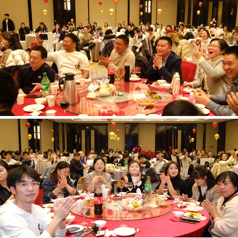 2025年1月11日晚,南京丰大国际大酒店版石软件年会现场热闹非凡,舞台灯光璀璨夺目,整个会场洋溢着欢乐与激动的氛围,全体员工们满怀期待地等待着年会的盛大开幕。
